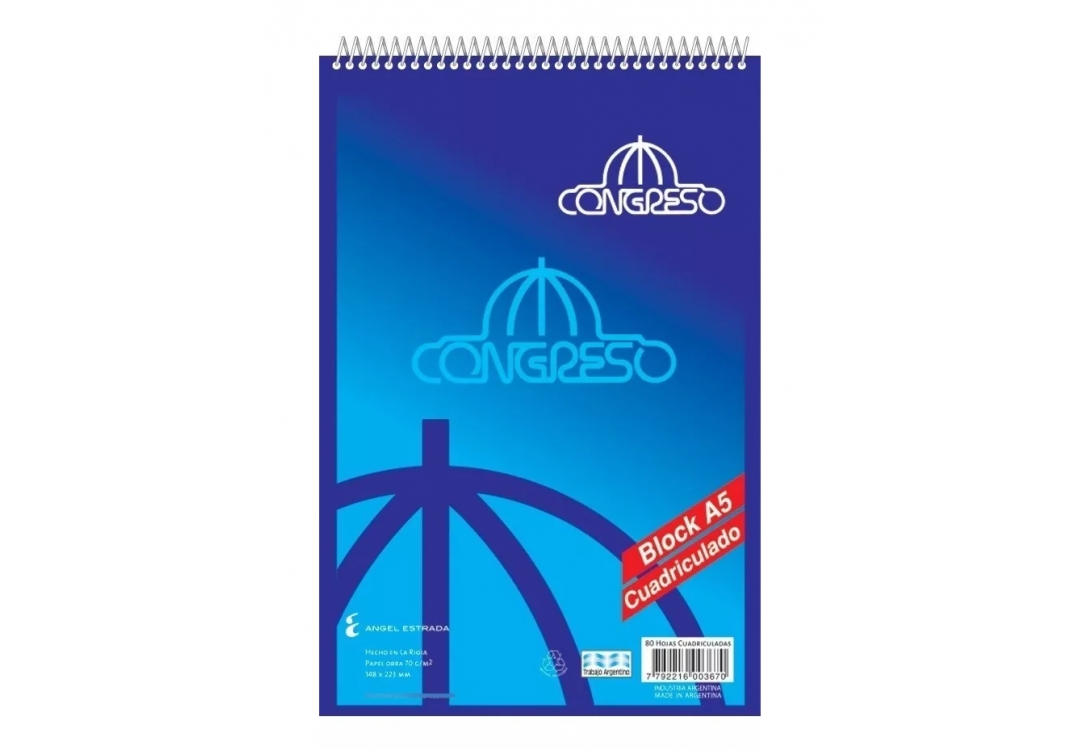 Block Congreso con espiral esquela cuadriculado, 80 hojas. Formato A5