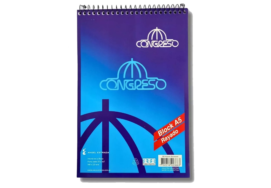 Block Congreso con espiral esquela rayado, 80 hojas. Formato A5
