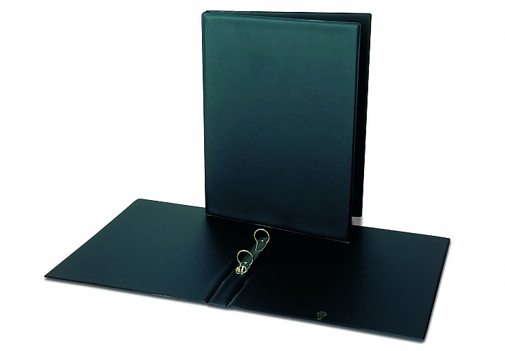 Carpeta de carton rigido forrada en tela plastica, tamaño oficio, dos anillos redondos, capacidad 23 mm. Medida: 27 x 36.6 cm