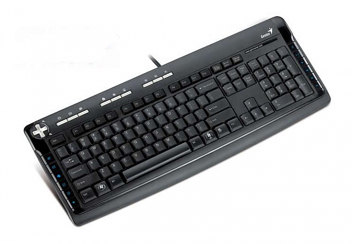 Teclado Genius KB-350E, conector USB, teclas para acceso rápido a Internet, Word, Excel, multimedia, e-mail. incluyen una función de derrame de agua para evitar cualquier bebida derrames accidentalmente, y un teclado de diseño para ahorrar espacio en el escritorio.