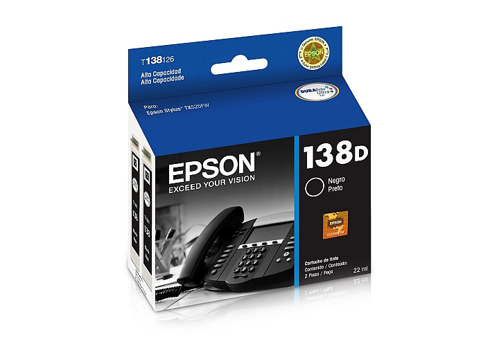 Cartucho Inkjet Epson T138126 Twin Pack negro, dos unidades de alta capacidad. compatible con Stylus Office TX525FW, original. Rendimiento 805 paginas
