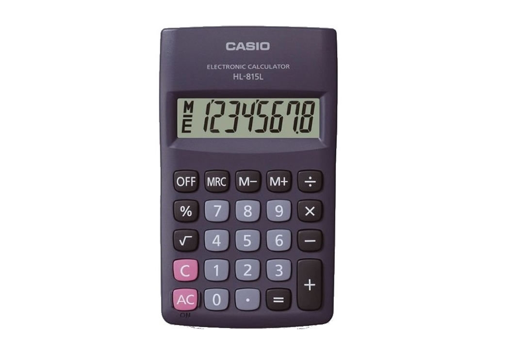 Calculadora de escritorio Casio HL-815L-BK. Pantalla de gran tamaño que permite una fácil lectura. Cálculos de porcentaje regular. Pilas AA. 8 digitos. Medidas: 11.8 x 6.9 cm