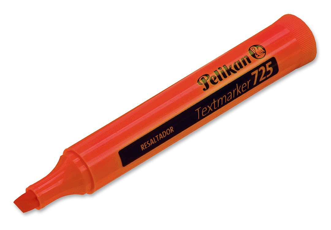 Resaltador Pelikan 725 (714) con cuerpo redondo. Punta biselada. Capuchon ventilado con clip. Trazos 5 y 2 mm. Tintas de alta fluorescencia aptas para papel, fax y fotocopias.