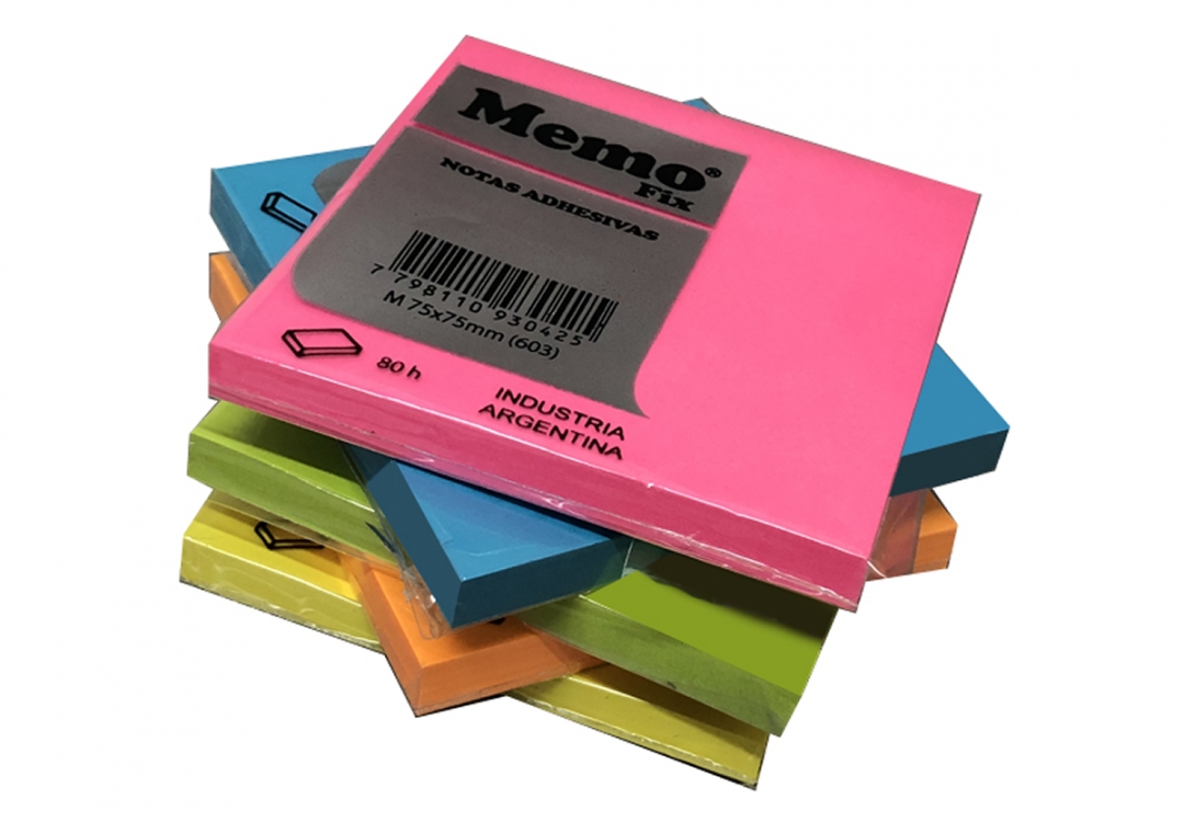 Tacos adhesivos 75 mm x 75 mm reposicionables, colores fluo, cada block contiene 80 hojas